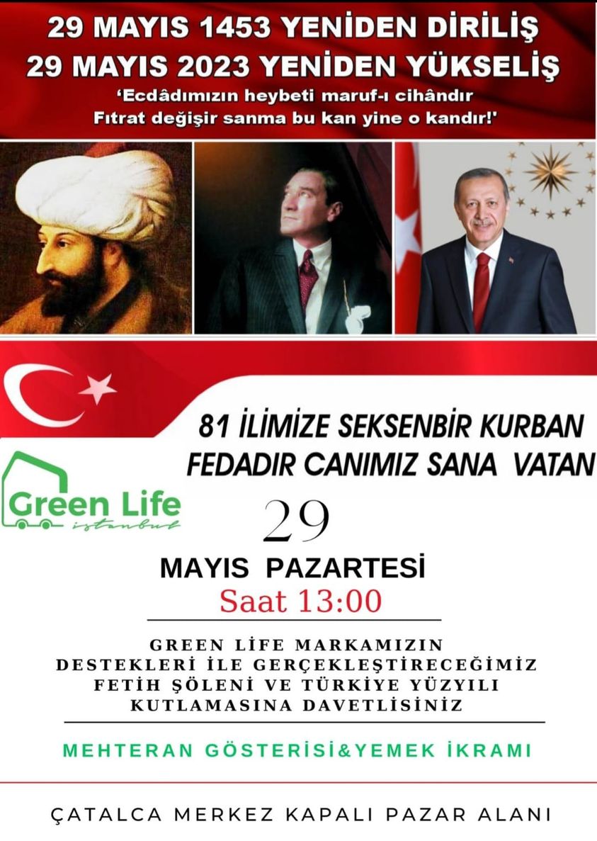 28 Mayıs Cumhurbaşkanlığı seçimlerinin ardından Recep Tayyip Erdoğan'ın yeniden cumhurbaşkanı seçilmesi farklı kutlamalara sahne oldu. Çatalca'da faaliyette bulunan Artvinli hemşehrimiz işinsanı Murat Sural, 81 ili temsilen 81 koyun keserken, 29 Mayıs İstanbul'un fethi de unutulmadı. Kuran tilaveti eşliğinde başlayan organizasyonda kesim işlemlerinin ardından vatandaşlara yemek dağıtıldı. Kesilen koyunların ise çeşitli dernek ve kuruluşlara bağışlanacağı öğrenildi.