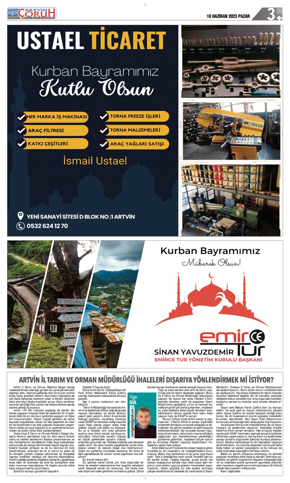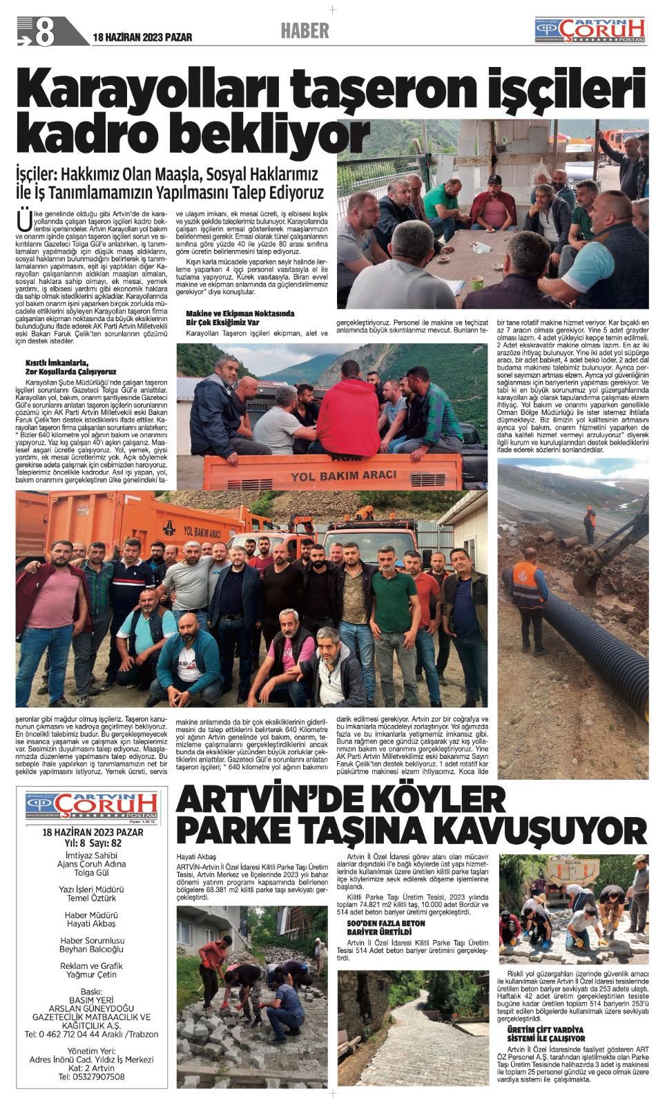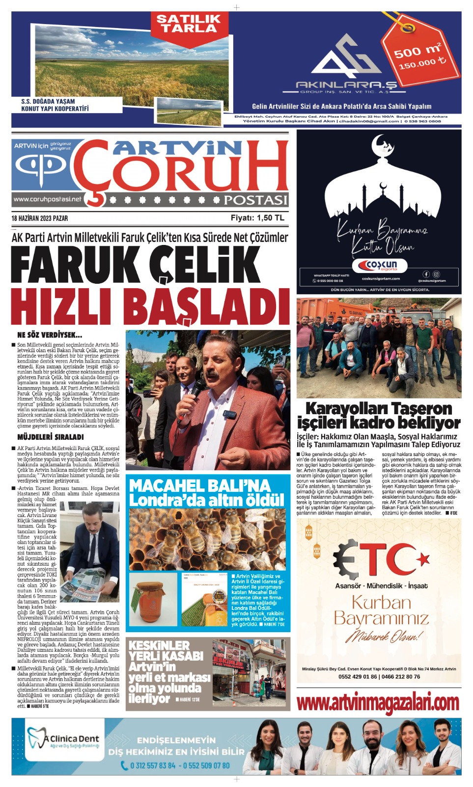Çoruh Postası Gazetesi'nin 18 Haziran 2023 Sayısı