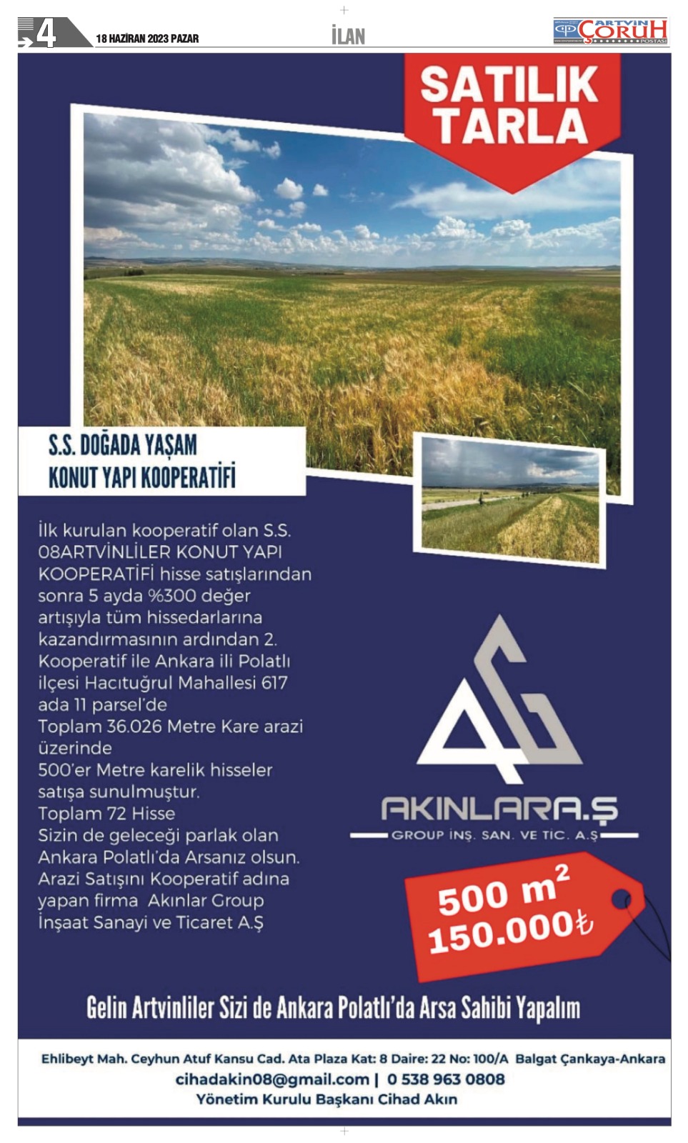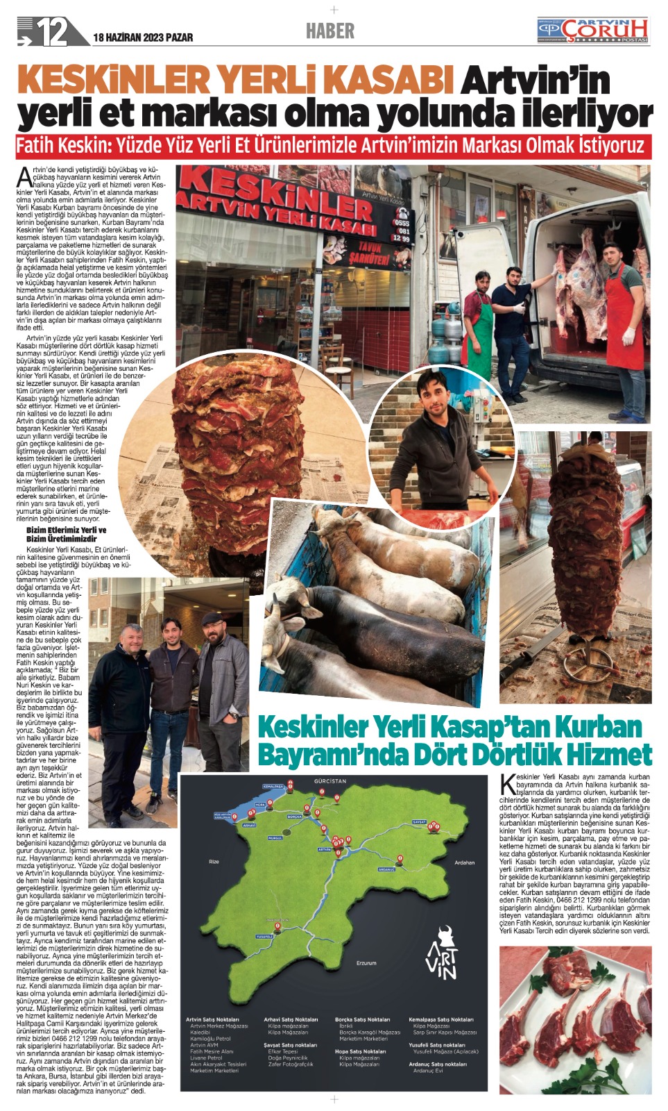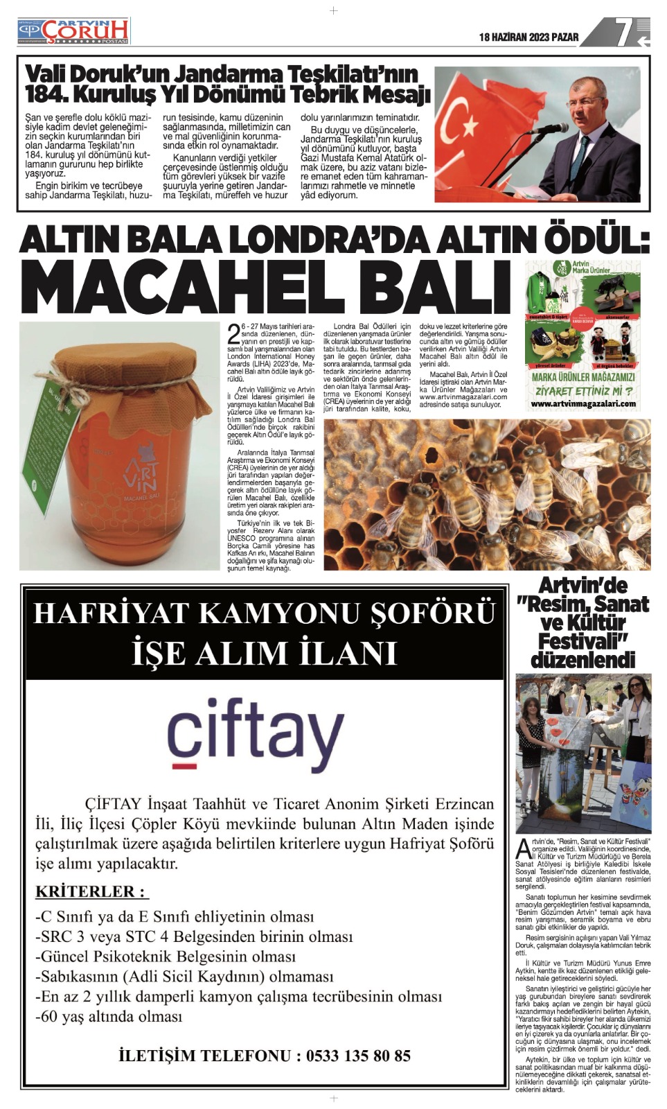 Çoruh Postası Gazetesi'nin 18 Haziran 2023 Sayısı
