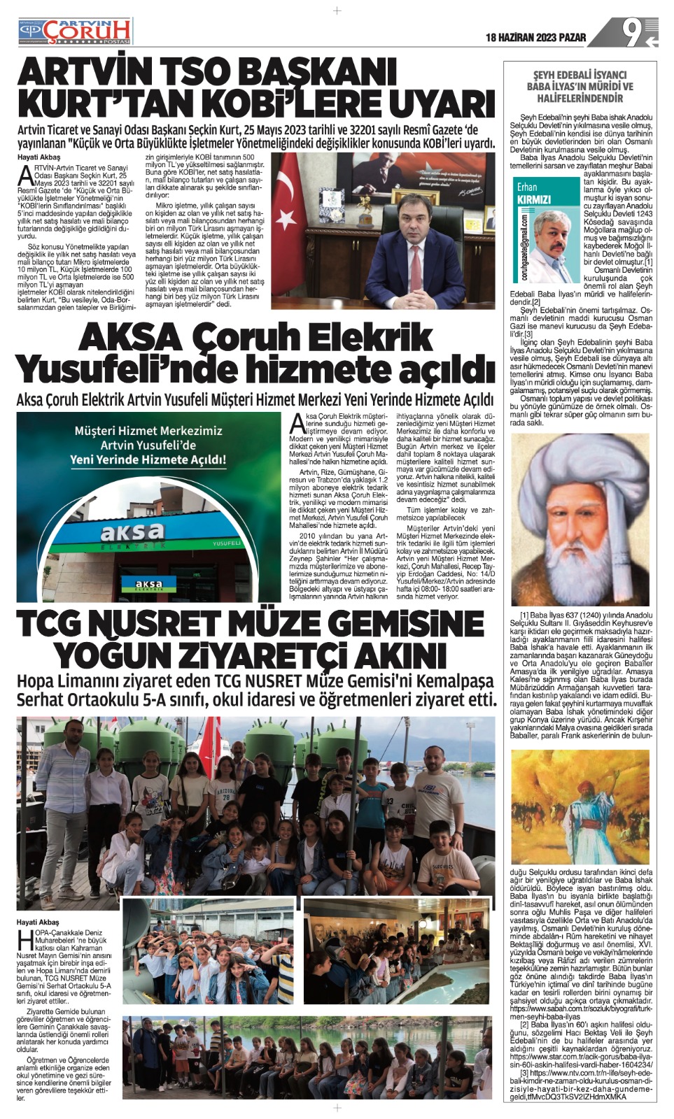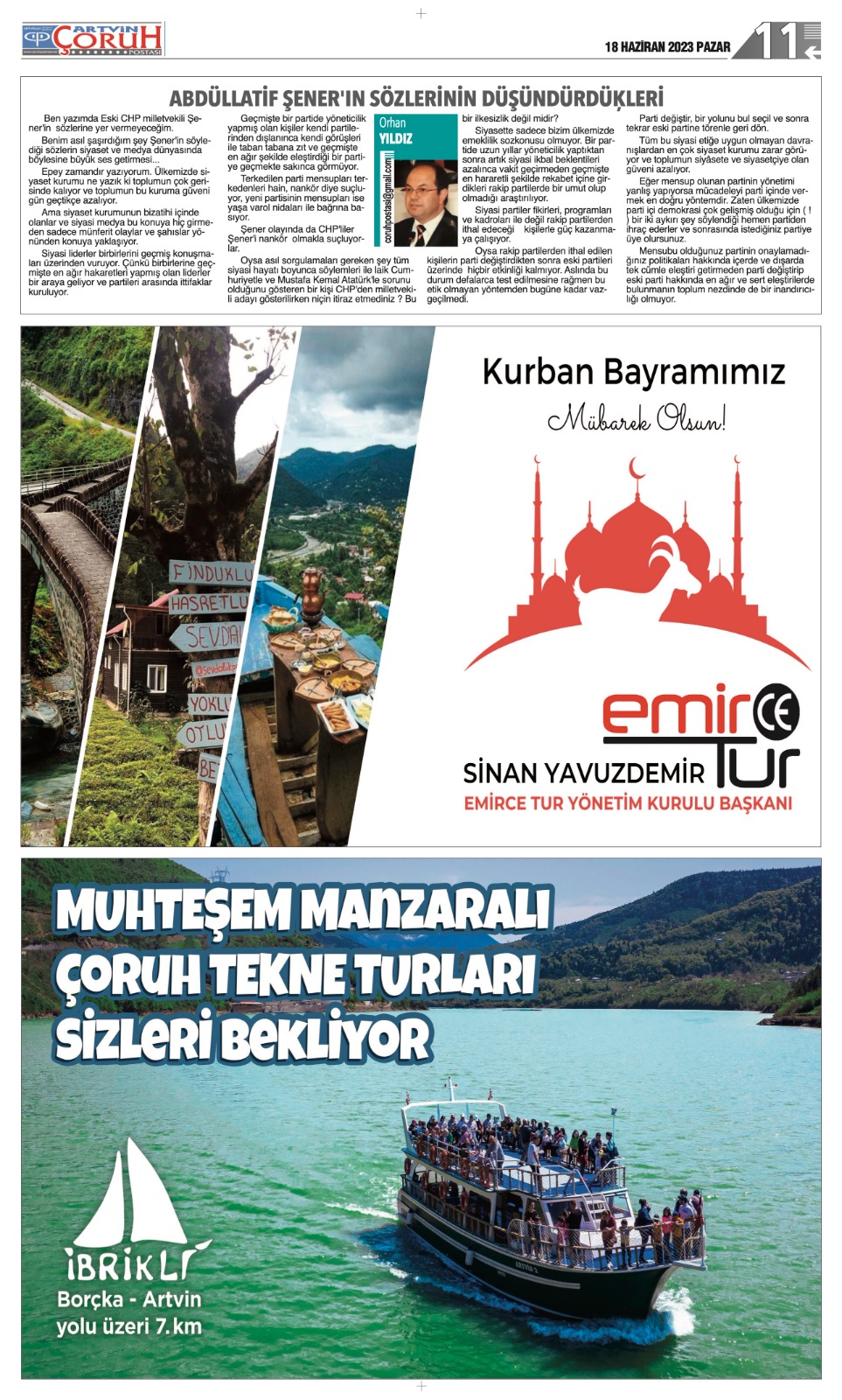 Çoruh Postası Gazetesinin 18 Haziran 2023 Sayısı