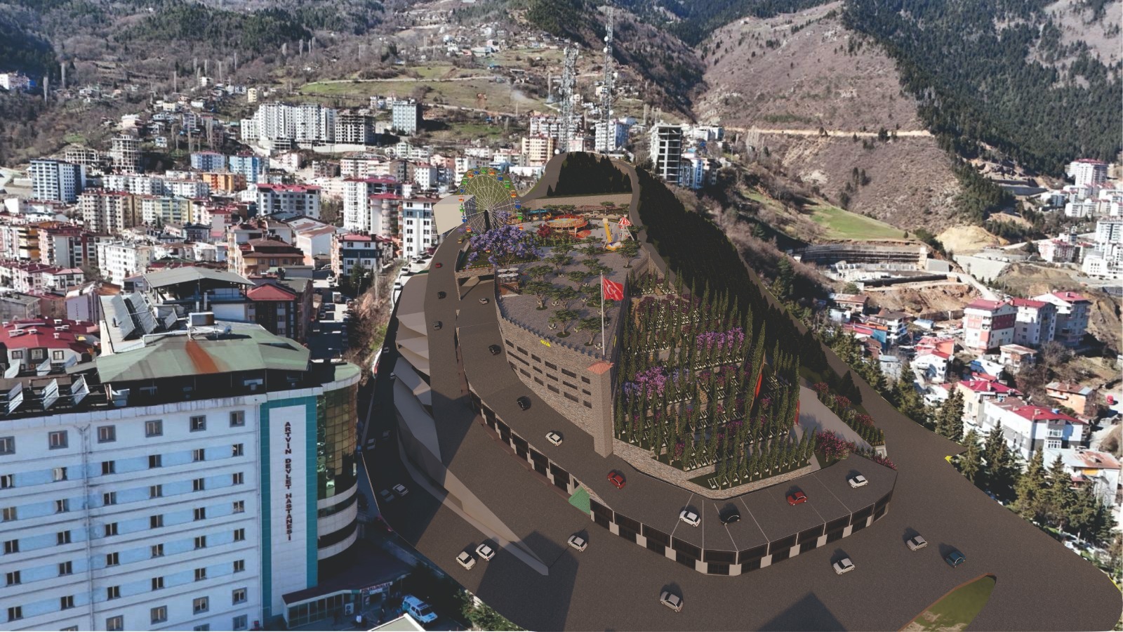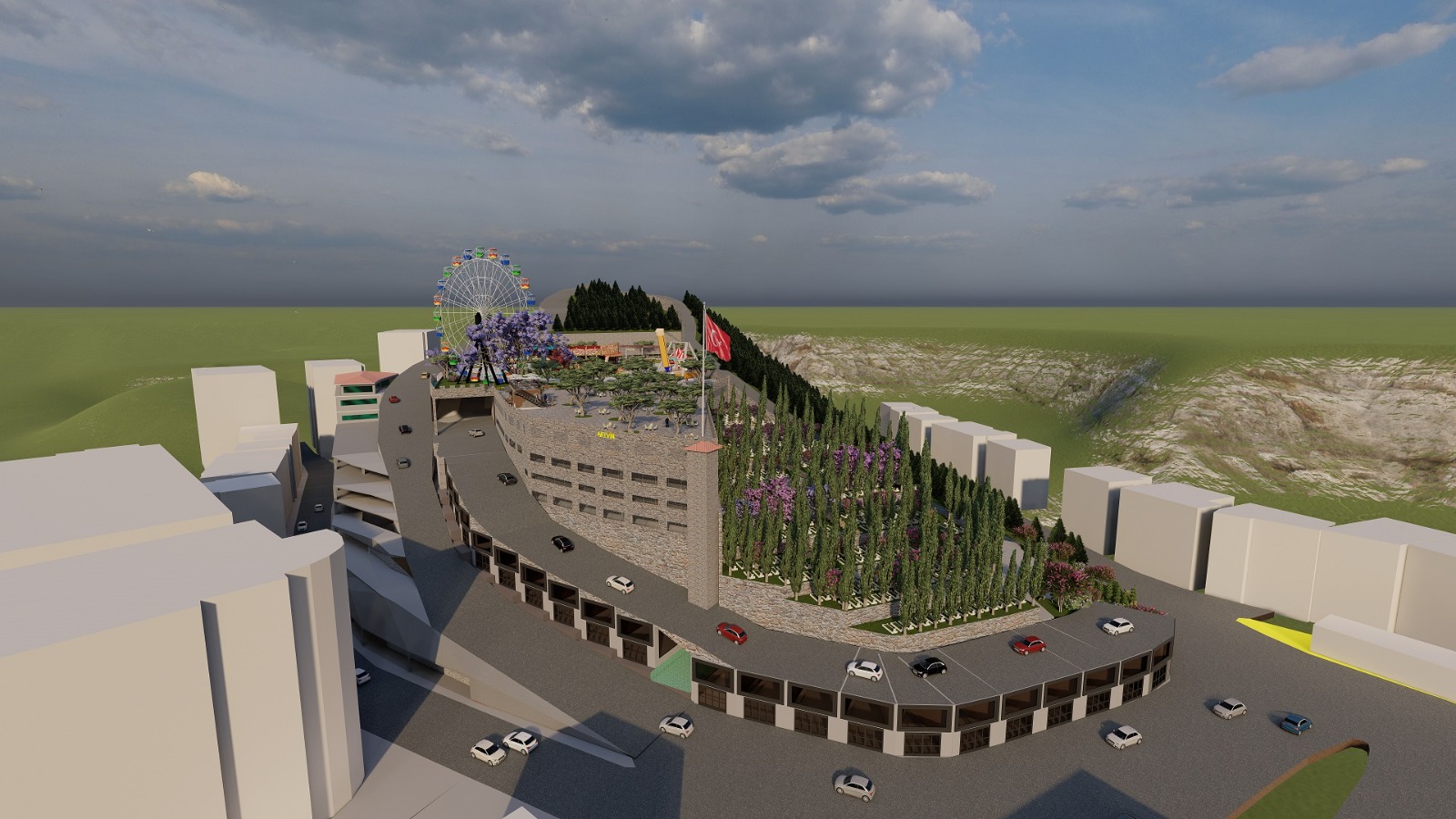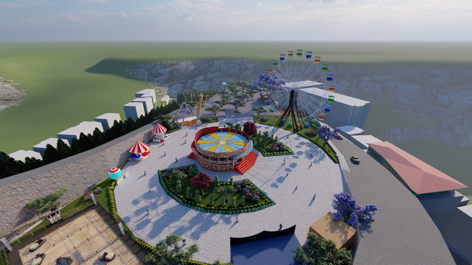 Lunaparkı Artvin halkının ayağına getireceklerini ifade eden Kocatepe, “Hem ticari alan hem 220 civarında otopark hem otoparkın yükseldiği yerde telsizlerin ön tarafı Üst Kolorta Mezarlığı ile çaprazlama yukarıya çıkan yolun arasında 6 bin metrekarelik bir alan oldu. Şehirde nefes alacak bir yer; ailelerin çocuklarıyla beraber çıkıp dinlenebilecekleri, çocukların eğleneceği lunapark düşündük. İnşallah biz bunu yapmayı başardığımızda bundan sonra aileler çocuklarını eğlenmek için civar illere Trabzon’a, Rize’ye lunapark için götürmeyecekler. Biz lunapark onların ayağına getireceğiz.” şeklinde konuştu.